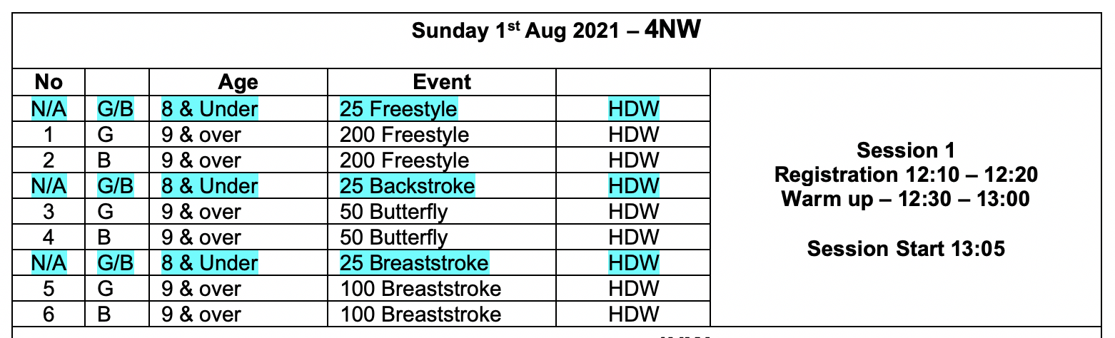 Please read the event T&C BEFORE ENTERING, This event has upper limit times please check these times to make sure your swimmer is not too fast to enter.